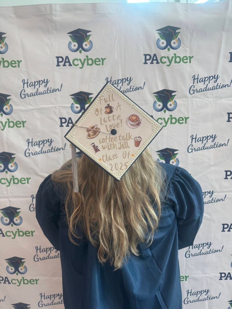 One of my favorite parts of graduating was decorating my cap, Coffee Talk themed, of course. My proudest achievement is launching, creating, and building my blog. A world of my own thoughts, it’s truly everything and more. My cap read: “Full of a Latte Love, Coffee Talk with Jill.”